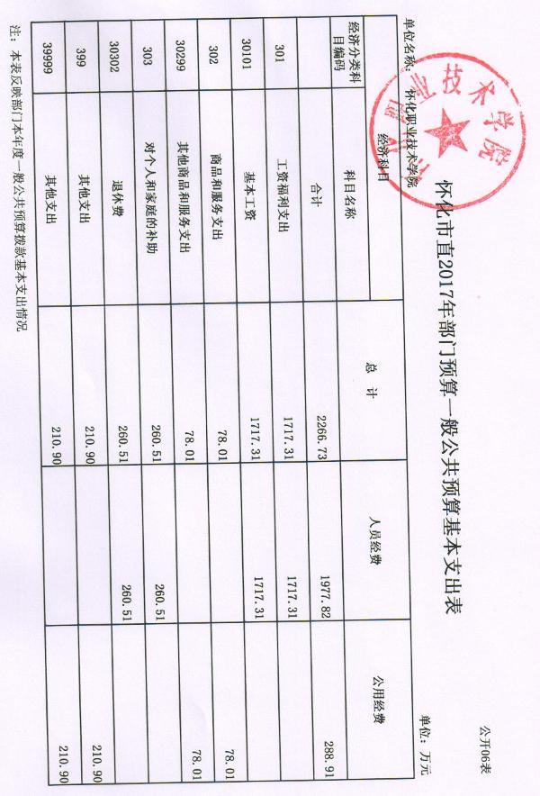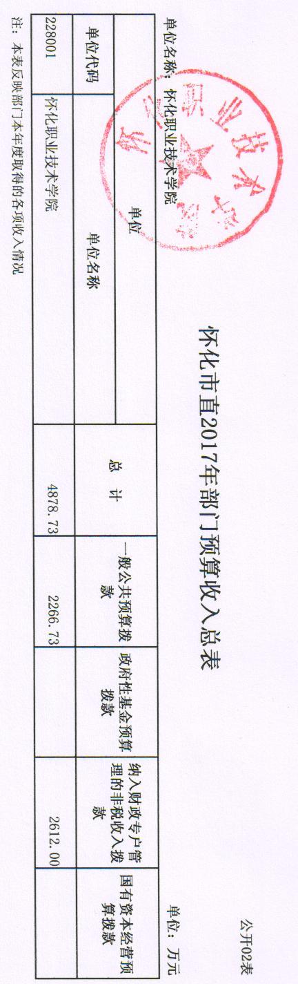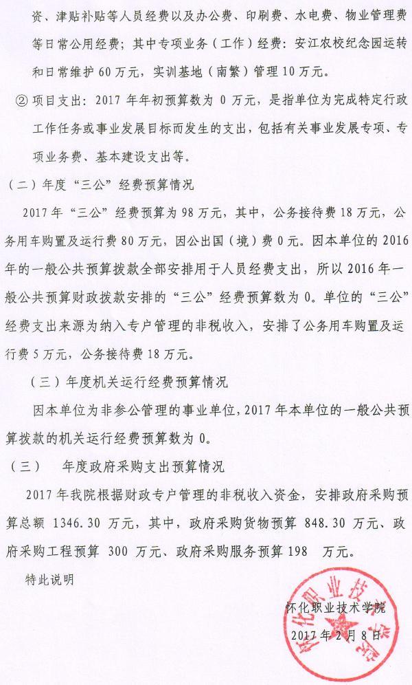 怀化职业技术学院2017年部门预算公开说明
