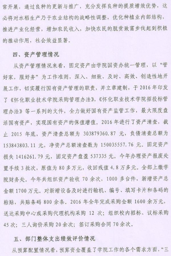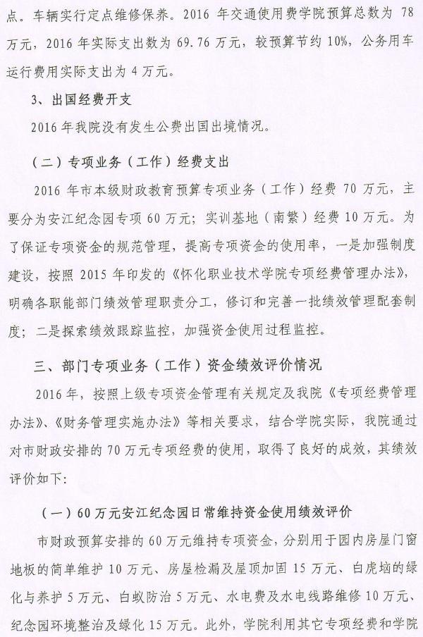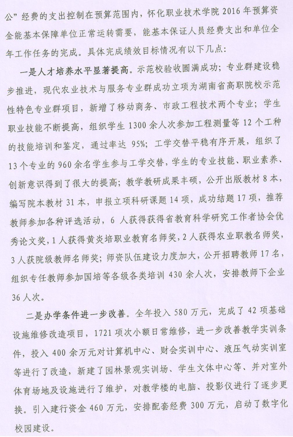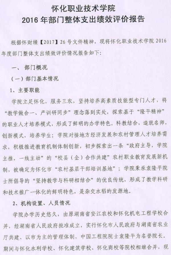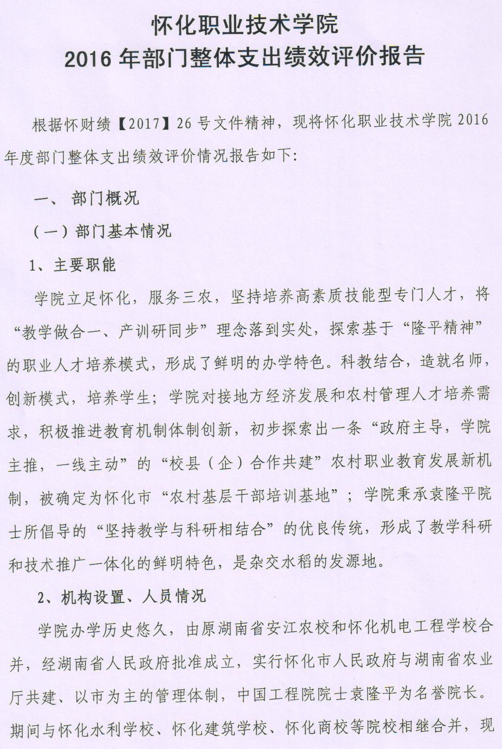 怀化职业技术学院院2016年部门整体支出绩效评价报告