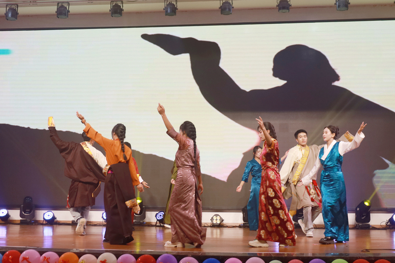 优美动人的开场舞《有我》拉开了本次文艺汇演的序幕,展示出中华儿女砥砺前行、不惧风浪的万丈豪情;《战火中的大学》《呼唤》《你的答案》《精武少年》激发了全体师生永远跟党走、奋进新征程的豪情与壮志;《稻子熟了,妈妈我想你了》深情缅怀和致敬我校名誉院长袁隆平院士;民族舞《江红锅庄》展示了中华民族一家亲,同心共筑中国梦的其乐融融画面;《用青春描绘梦想》《闪耀吧,青春的火光》……精彩的节目表演引得现场掌声不断。清廉文化、党史校史知识抢答环节,现场观众热情参与。最后,现场全体观众大合唱《我和我的祖国》。