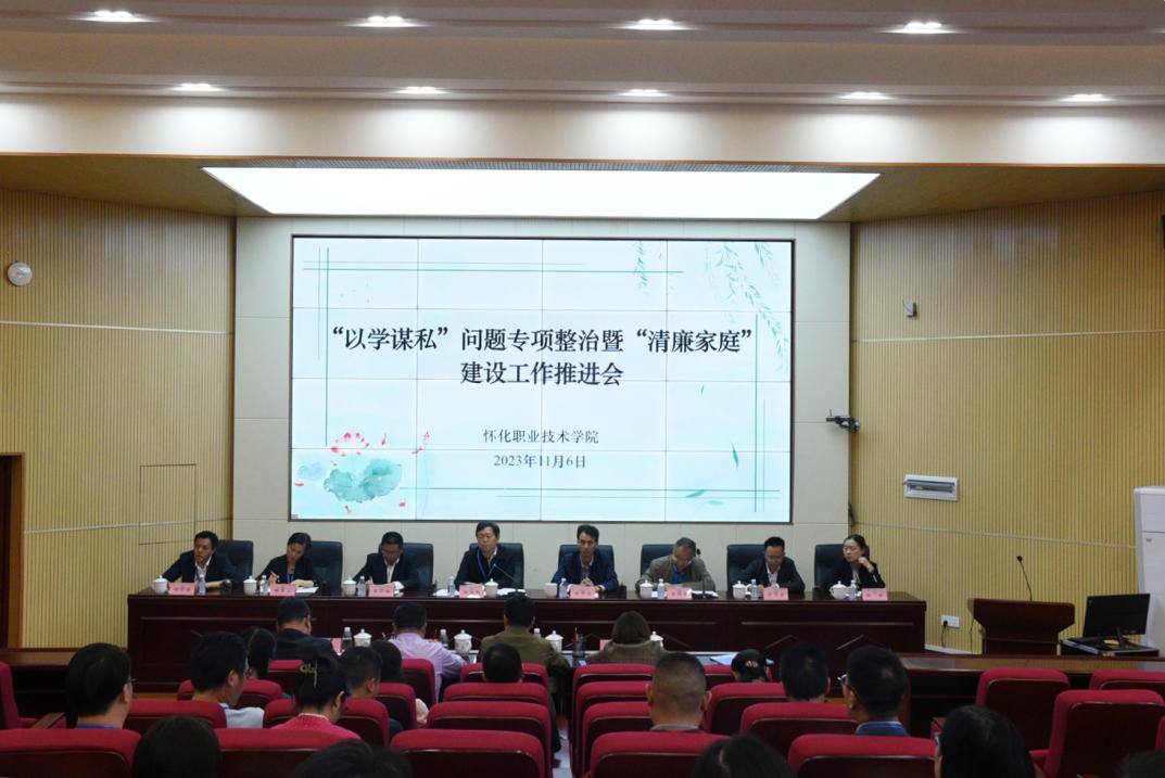 11月6日,学校召开“以学谋私”问题专项整治暨“清廉家庭”建设工作推进会。党委书记胡扬帆主持,校领导刘学文、张云龙、罗向东、廖冬云、罗文忠、周碧波、向敏、肖宪龙、钟峰、刘鑫、李亚玲参会,各部门主要负责人、二级学院党政主要负责人、纪委委员、各党支部纪检委员、家属代表参会。