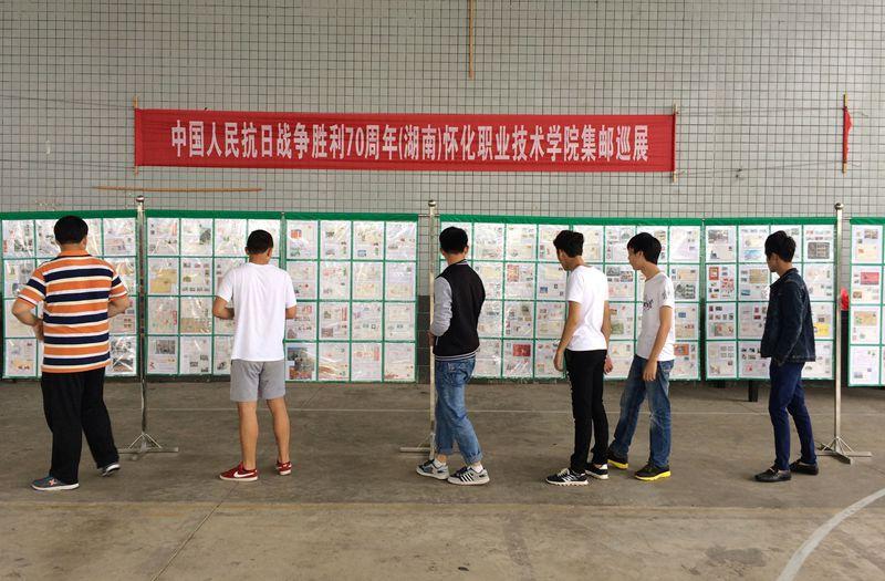 此次集邮巡展怀化市邮政分公司、怀化市邮协、洪江市邮协组织了近30部60框960个贴片抗战题材。全院3000多名师生员工观看了邮展。邮展规模之大、人数之多,开创了集邮活动进大学校园的新局面,达到了向大学生们进行爱国主义教育、国防教育和民族精神培养教育的目的。