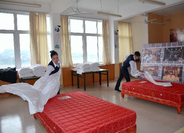 2016年怀化市中等职业学校技能竞赛于3月10日在我院拉开帷幕。来自全市16所学校的109名参赛选手在为期1天的竞赛中参加理论与实际操作的考核,大赛共设中餐宴会摆台、客房中式铺床、职业英语服务等9个赛项。