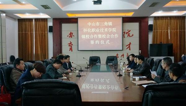 三角镇隶属中山市,当地有企业1000多家,主要以电子企业为主,本次本着“走出去、请回来”的思路与我院签署《镇校合作协议书》,双方就共建实训、生产中心、安排毕业生实习、开展“订单式”“定向式”培养等工作达成了合作协议,希望与我院的合作可以为当地企业培养更多管理干部,为当地建设和发展提供有力的人才保障。