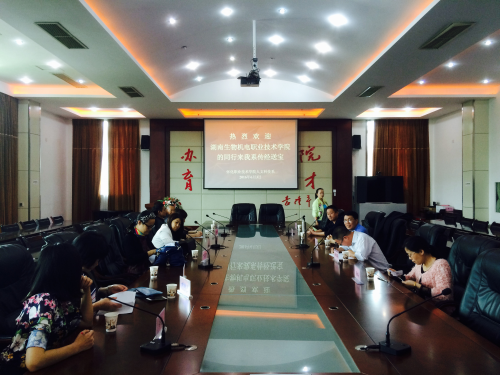 6月3日下午,湖南生物机电职业技术学院人文科学学院数学教研室一行8人,在教研室主任张仲珍副教授的带领下到访我院人文科技系,开展包括数学教学、科研、管理、课程建设等方面的考察交流活动,人文科技系主任李涛、副主任黄林芳、数学教研室主任李佑武等5位数学老师参加了交流。