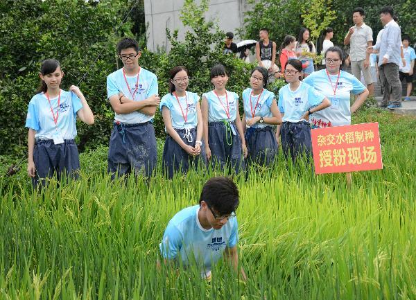随后,安江农校杂交水稻研究所所长曾存玉及环生系教授全庆丰现场为大家讲授杂交水稻制种知识,并让远道而来的青年学生现场体验杂交水稻制种过程中的播种和杂交授粉,学生十分认真汲取知识和经验。