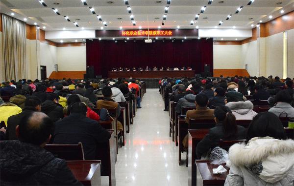 会上,院长王聪田代表党委行政作《怀化职业技术学院2016年度工作总结报告》,对全年工作取得的主要成绩和存在的不足作了总结回顾。报告指出,我院今年工作取得了五大标志性突破,一是示范校验收圆满成功,标志着我院迈入了全省高职院校的先进行列,为学院朝着更高目标前进提供了新的平台;二是生均经费的落实,标志着自高职院成立以来每年收支不平衡的历史已经结束,为学院良性发展奠定了基础;三是示范性特色专业群成功立项,标志着我院的办学特色与优势正在形成品牌,为学院建设一流高校明确了方向;四是巡视整改成效显著,标志着我院规范办学、依法办学的理念正在形成共识,为学院持续健康发展提供了保障;五是省文明高校验收合格,标志着学院精神文明实现新跨越,为建设和谐怀职、平安怀职、幸福怀职增加了新的动力。同时要求全体教职工在新的一年开创各项工作新局面,再创学院发展新辉煌!并衷心祝愿大家过一个平安祥和、健康快乐的春节。