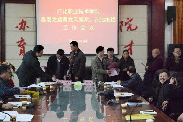 各职能部门、系部负责人依次向胡书记、王院长递交党建、党风廉政建设、文明创建、综治维稳四项责任状。